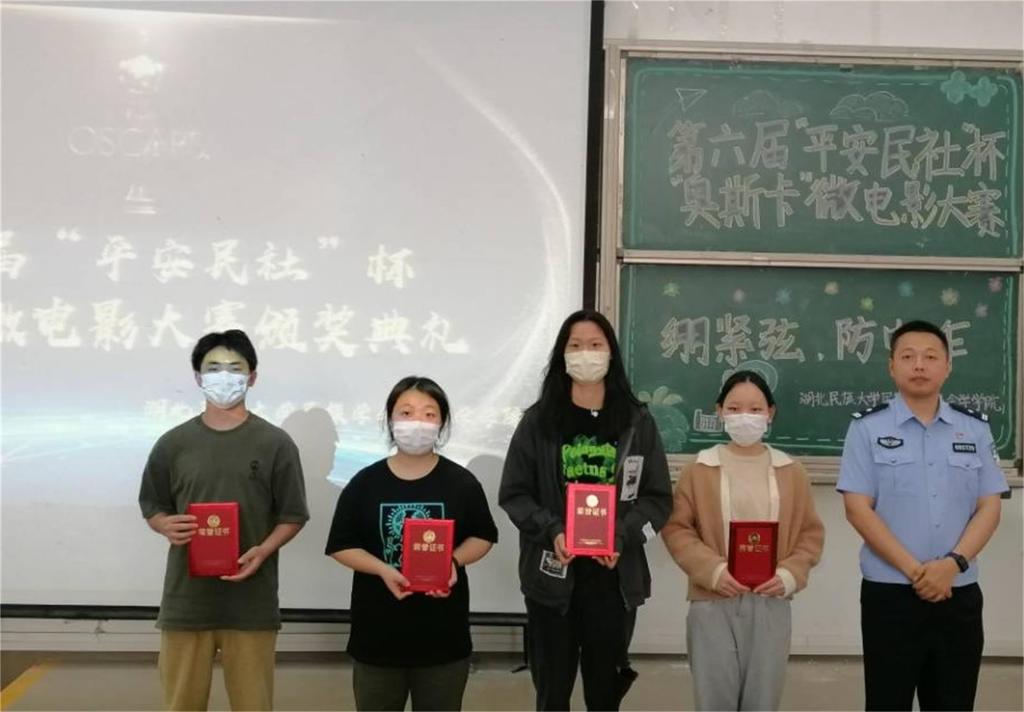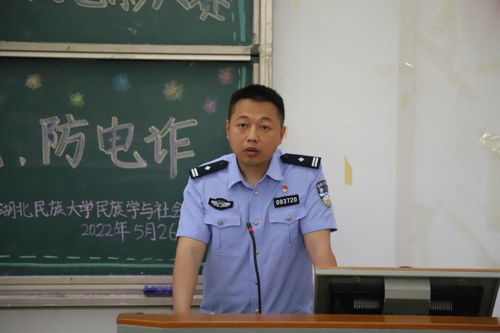 本网讯(记者 付欣淼/文 卢子畅 刘欢/图)为宣传电信诈骗的危害,提升个人防范意识,5月26日,我院于修远楼5B404学术报告厅成功举办第六届“平安民社”杯“奥斯卡”微电影大赛活动。莅临此次活动的各位评委嘉宾有舞阳坝派出所副所长王德罡、舞阳坝派出所警官陈三兴、校团委书记吴珊、保卫处副处长何永红、学工处思政科老师田甜、民族学与社会学学院党总支副书记杨洪林,我院学生科老师、全体班主任及大一大二全体学生参与本次活动。