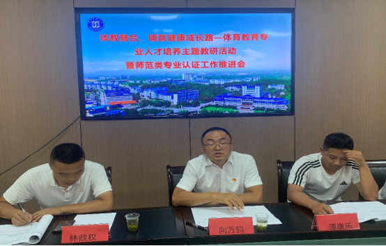 为落实“体教融合,校校合作”,加快推进师范专业认证工作,全面提升我院师范教育质量,6月18日下午,我院在会议室开展体育教育专业人才培养主题教研活动。参会人员包括:实习单位恩施市思源学校校长向万钧、思源学校体育组教师、九游会国际体育学院书记赵魁轩、院长何斌、副院长胡庆华、副院长张辉以及教师和学生代表。会议由体育学院副院长胡庆华主持。