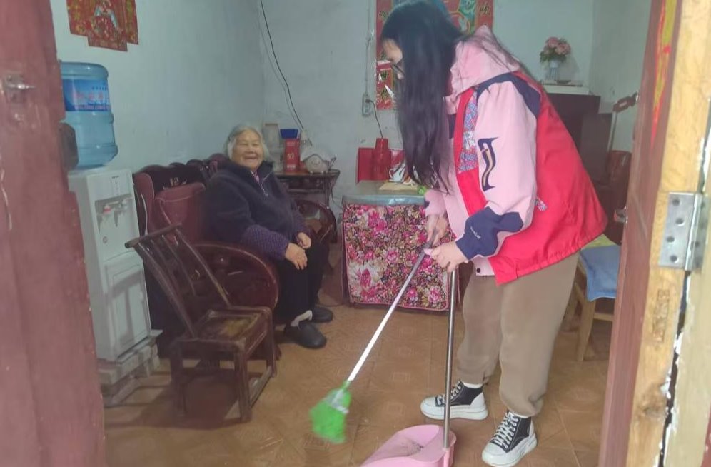 一支队伍走进城乡街社区独居老人家中,与老人们促膝长谈。志愿者们细心询问老人身体状况,陪老人聊天谈心,帮老人打扫房屋、整理物品,用贴心陪伴驱散孤寂,让老人们真切感受到青春的温暖与关怀 。