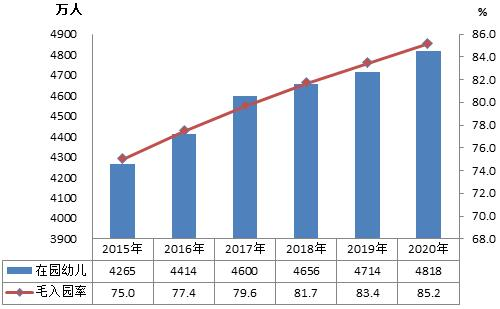 学前教育毛入园率[4]达到85.2%,比上年提高1.8个百分点。