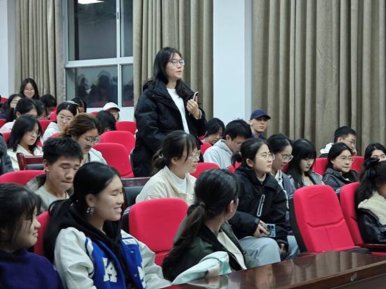 互动环节,学生就文化翻译、本土语境下的国际视野培养等问题积极提问。艾斌教授结合实例给予细致回应。陈斌副院长在总结中强调,语言能力提升依赖持续实践与系统反思,鼓励学生“在写作中思考,在对话中成长”。