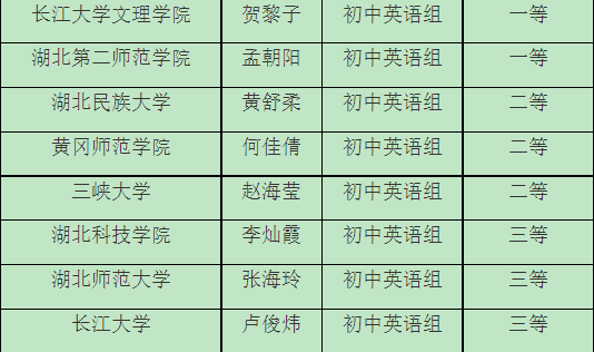 湖北省普通高校师范专业大学生教学技能竞赛是“学生以赛促学,教师以赛促教、以赛促研”的有力抓手,是学生与学生、学生与指导教师、指导教师与指导教师之间相互交流学习的良好平台。我院长期以来注重师范生教学技能培养,每年定期举办师范生技能大赛与系列讲座,旨在提高师范生的教学技能、全面育人观、师德修养和教学情怀。本次竞赛成绩的取得展现了我院对师范生发展的充分支持和英语师范生的培养水平。(作者:黄舒柔 图片:舒婧娟 编辑:舒婧娟 审核:陈斌)