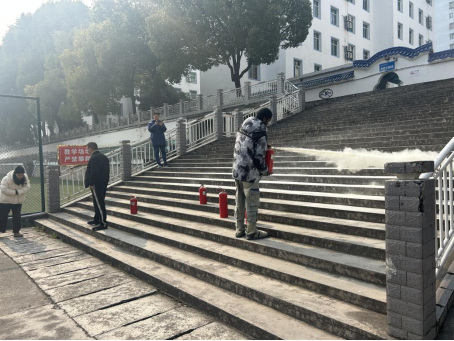 疏散演练环节结束后,学校保卫处的专业人员为国际学生们带来了一场生动实用的消防技能培训。工作人员详细介绍了日常生活中常见的几种灭火器型号及其适用场景,并重点演示了如何正确使用干粉灭火器。“面对初期火灾,保持冷静与沉稳是关键。”工作人员一边演示,一边向留学生们强调操作口诀:“一提、二拔、三握、四压”,即首先提起灭火器,然后拔掉保险销,握住喷管前端,最后对准火焰根部压下压把进行喷射。国际学生在工作人员的指导下,踊跃上前,亲身体验了灭火器的操作。