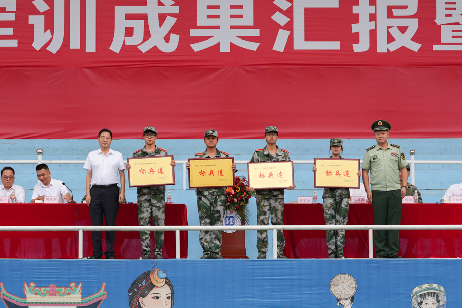 邓磊代表学校党委和军训团对受到表彰的先进集体、优秀教官和优秀学员表示祝贺,对承担本次军训任务的武警恩施支队、全体教官致以崇高敬意,对为军训提供卫勤保障、管理服务及新闻宣传的工作者表示诚挚感谢。他表示,经过军训磨砺,2024级新生洗脱了稚嫩之气、强化了集体观念、升华了纪律意识。他希望新生同学把脚步迈向更加辽阔的世界,争做“引领者”;把目光投向更加遥远的未来,莫负“新时代”;把人生引向更加高远的境界,追求“真善美”。