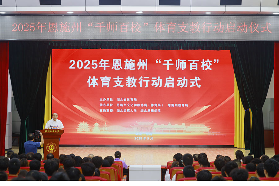 恩施州文化和旅游局、恩施州教育局分别向建始县、来凤县和支教高校授予“2025年恩施州“千师百校”体育支教团”的旗帜。