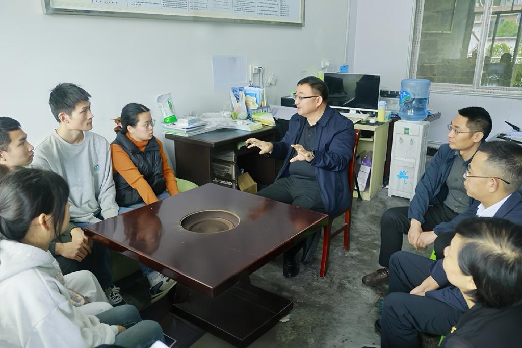 戴清堂首先与马前村“两委”、学校驻村工作队进行座谈,全面了解村情、特色产业与来年项目谋划情况,并就学校帮扶成效与下一步重点帮扶方向展开交流。