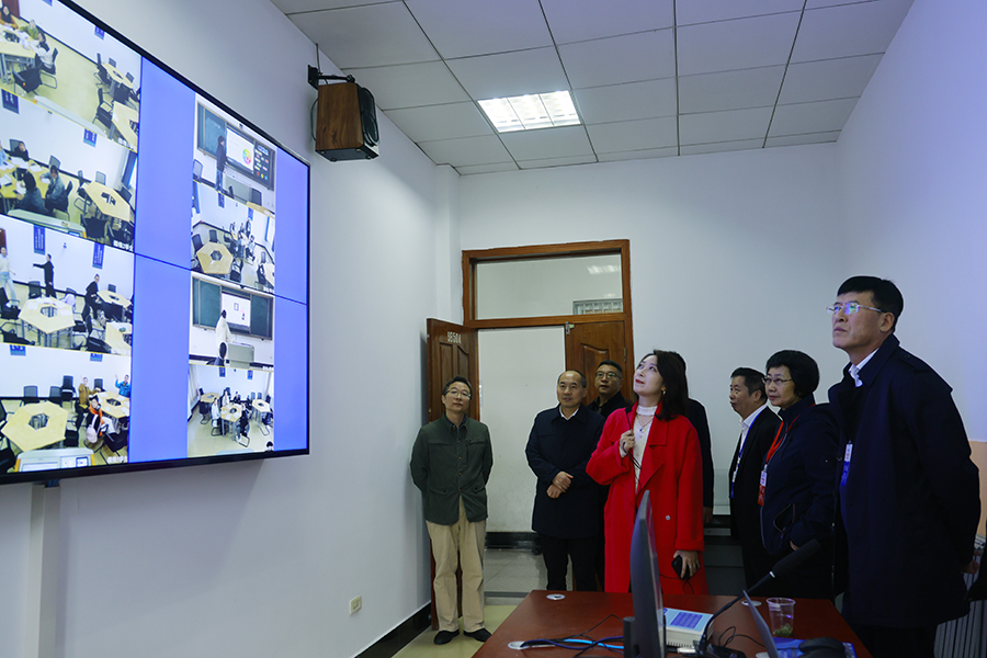专家组考察师范技能实训总控室