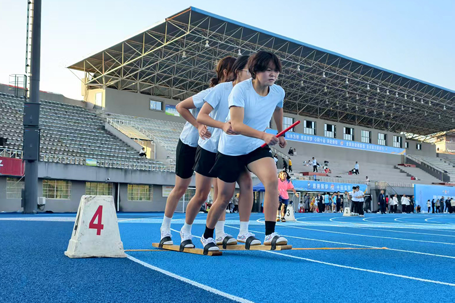 学校运动员参加板鞋竞速接力赛