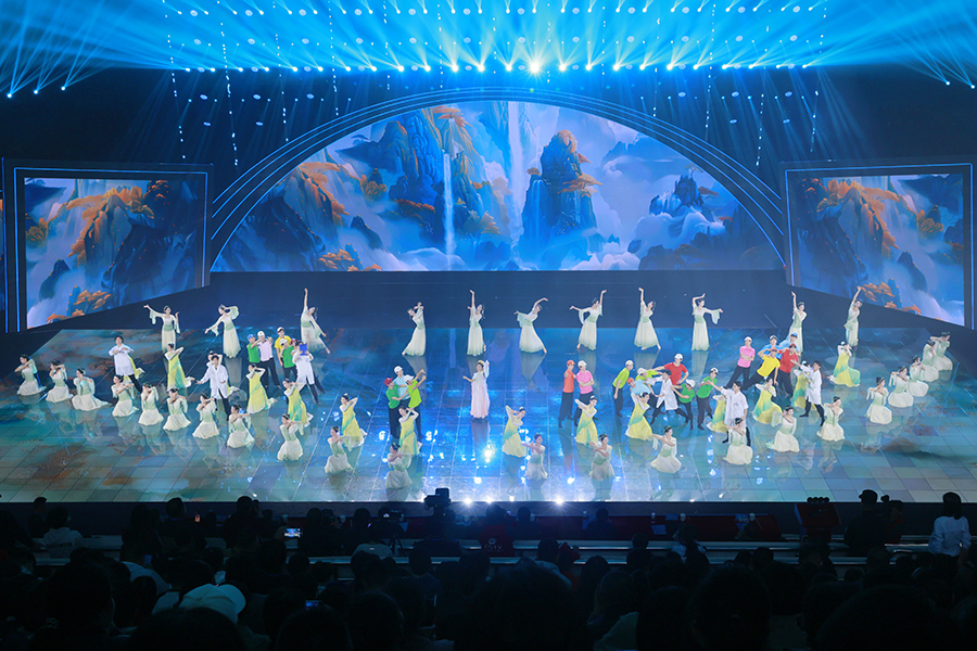 我校师生全面参与了本次运动会的文体展演。音乐舞蹈学院教师担任展演晚会总导演和篇章导演,并执导闭幕式舞蹈节目《花想容・露华浓》,100余名学生参与了开闭幕式演出,28名学生担任了《锦绣画卷》的旗手和引导员。