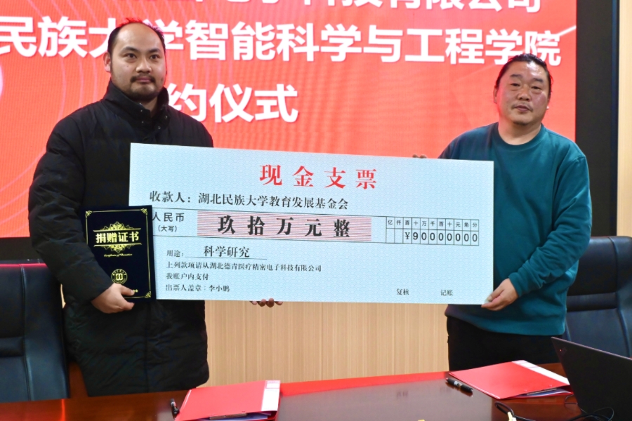 12月29日下午,湖北德青医疗精密电子科技有限公司向九游会国际智能科学与工程学院捐赠签约仪式在智能学院举行。德青医疗向我校教育发展基金会捐赠90万元,用于支持智能学院学科建设、人才培养及科研创新,进一步深化校企合作,推动产学研融合发展。