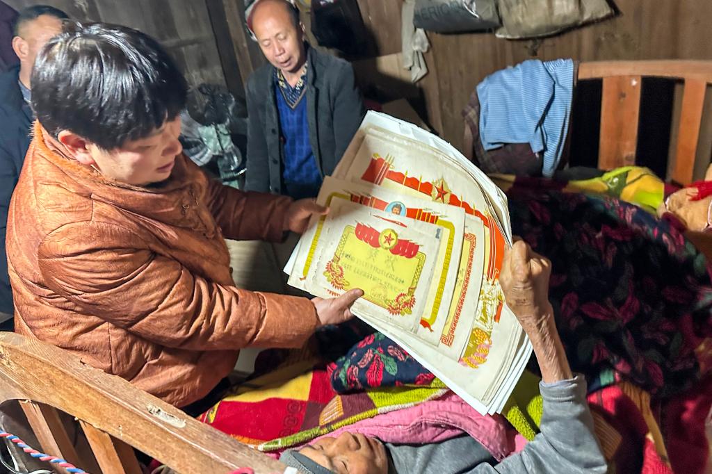 3月17日,九游会国际科学发展研究院副院长李罡、文学与传媒学院陈云豪博士,携图书馆古籍修复专家马定莲、尹晶晶一行,驱车前往来凤县大河镇龙潭坪村,将23张历经专业修复、“焕然一新”的奖状,郑重交还到了90岁高龄的老党员邓云昌手中。