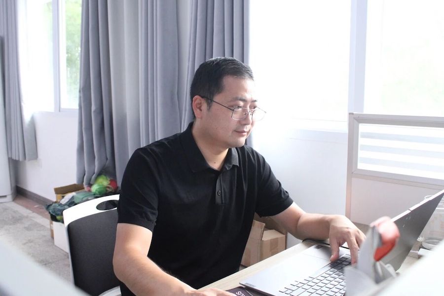 李明龙在办公室备课