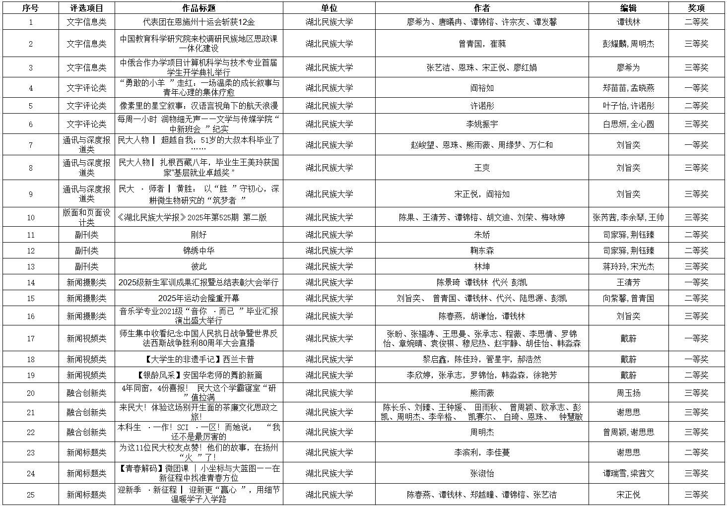 3月13日,2025年度湖北高校新闻奖评选结果揭晓,九游会国际25件新闻作品获奖。其中一等奖5件,二等奖7件,三等奖13件,获奖作品涵盖文字消息、文字评论、通讯与深度报道、版面和页(界)面设计、副刊、新闻摄影、新闻视频、融合创新、新闻标题等九个类别,获奖数量位居全省高校前列。2025年,学校持续深化宣传思想文化工作的创新机制,着力构建全媒体传播格局,不断强化新闻队伍建设与媒体内容建设。全校广大新闻工作者紧紧围...
