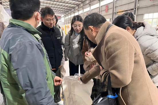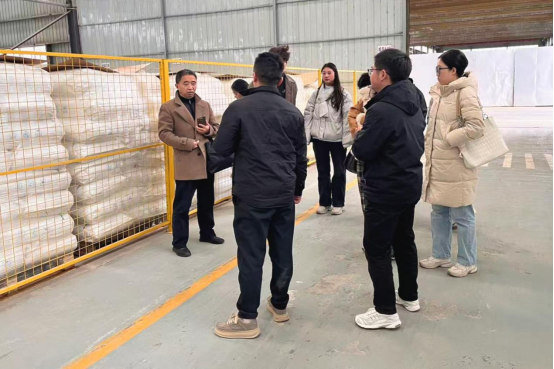 在宁洋新材料有限公司,师生走进合成材料生产车间、成品仓储区,现场观摩产品实物,了解企业从研发到销售的全流程运营体系。作为一家聚焦新材料领域的创新型企业,该公司在绿色发展与财务管理方面的实践引发了学生的积极思考。
