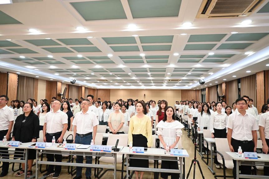 本网讯(通讯员 王清芳 罗熙晗)金秋送爽,丹桂飘香。9月16日晚,学院在德智楼远程教学观摩室隆重举行2025级新生开学典礼暨师范生宣誓仪式。行业导师代表、学院领导班子、各科室负责人、各基层教学组织负责人、教师代表、2025级本(预)科生班主任以及2025级本(预)科生及研究生代表齐聚一堂,共同开启新征程。开学典礼由学院党总支书记宁华宗主持。