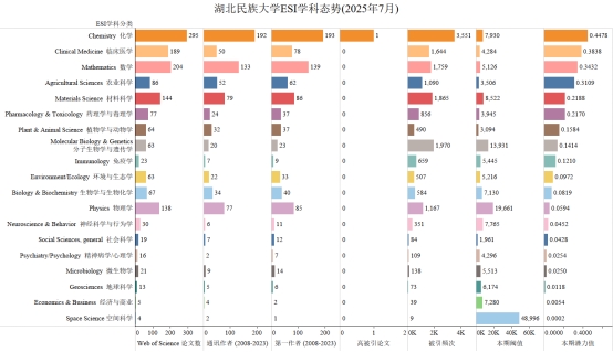 图1 我校入围ESI学科前1%学科分布情况-高被引论文 (2025年7月)