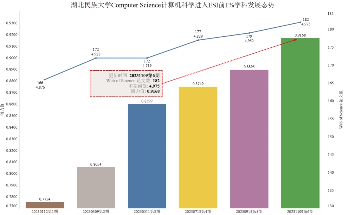 表6:2023年11月我校进入ESI前1%潜力学科(Computer Science计算机科学)发展态势