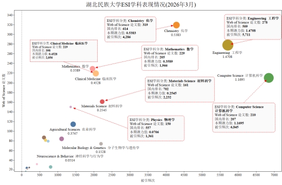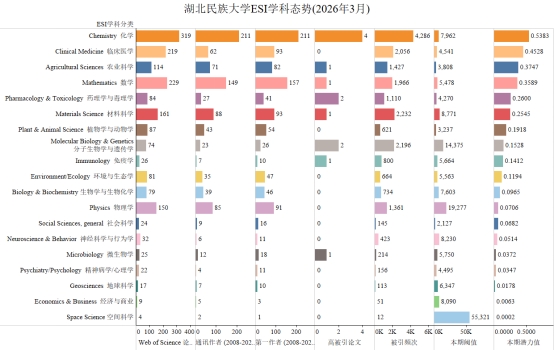 图2 我校入围ESI学科前1%学科分布情况-热点论文 (2026年3月)