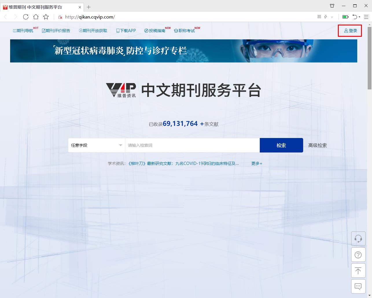 5、完成登陆,跳转至中文期刊服务平台资源页面。
