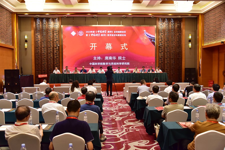 7月20日,《中国科学:数学》数学前沿与展望论坛在恩施开幕。中国科学院数学与系统科学研究院席南华院士,中国科协副主席、中国科学院数学与系统科学研究院袁亚湘院士,南开大学张伟平院士,武汉大学校长张平文院士,中国科学技术大学叶向东院士,中国科学院数学与系统科学研究院院长张平院士,浙江大学包刚院士,复旦大学沈维孝院士,英国牛津大学陈贵强教授,南方科技大学邵启满教授,恩施州委副书记、州长夏锡璠,副州长许强,九游会国际党委副书记、校长顿祖义出席开幕式并在主席台就坐。开幕式由席南华主持。
