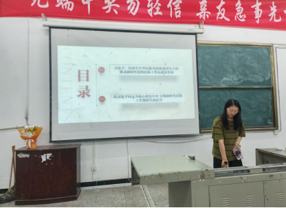 团支书从“廉洁教育的含义”、“加强大学生廉洁教育意识的重要性和必要性”、“大学生廉洁教育中存在的问题”、“加强大学生廉洁教育的途径”四个方面展开讲解廉洁意识主题班会。首先明确了廉洁的意义,指出青年的价值取向决定了未来整个社会的价值取向,而青年又处在价值观形成和确立的时期,抓好这一时期的价值观养成十分重要。其次着重分析了加强大学生廉洁意识教育的重要性和必要性,再次强调大学生廉洁意识教育是培养德才兼备高素质人才和提高青年思想道德素质的必然要求。