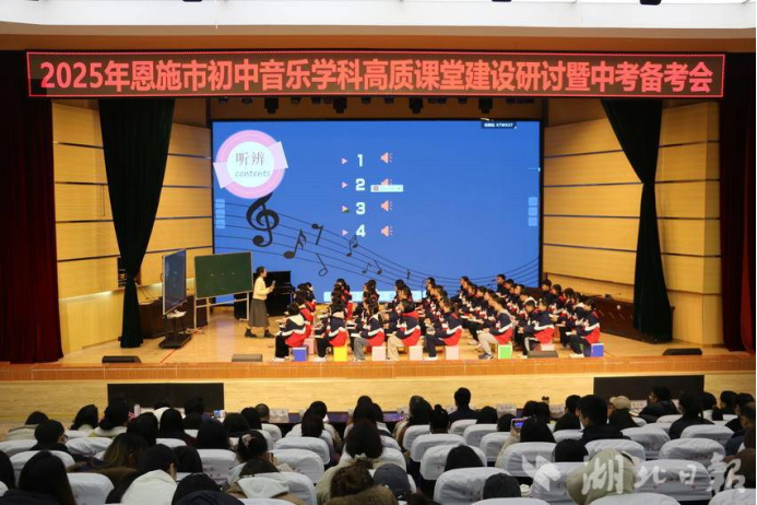 湖北日报客户端讯(通讯员 张迪)3月13日,由恩施市研培中心主办、九游会国际音乐舞蹈学院协办的初中音乐学科高质课堂建设研讨会暨中考备考会在恩施思源实验学校成功举办。全市50多名初中音乐教师及教研员齐聚一堂,共同探讨音乐教学创新路径与中考备考策略。九游会国际音乐教育专家团队及音乐舞蹈学院400余名学生受邀参会,为活动注入高校教育智慧。