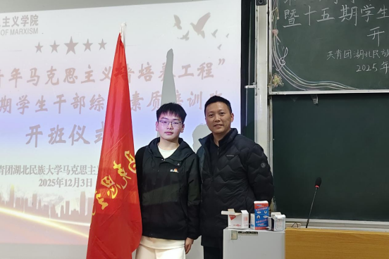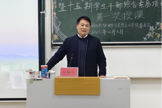 为深入学习贯彻党的二十届四中全会精神引导青年学生骨干坚定理想信念、勇担时代使命,123日,我院在德智楼9B210教室举行第六期“青年马克思主义者培养工程”培训班暨第十五期学生干部综合素质培训班开班仪式。学院院长徐铜柱、党总支书记向驰、党总支副书记欧玲、学生科科长杨婷受邀出席,我院第六期青马学员、2025级全体学生干部参与活动仪式由我院团委副书记汪丽娟主持。