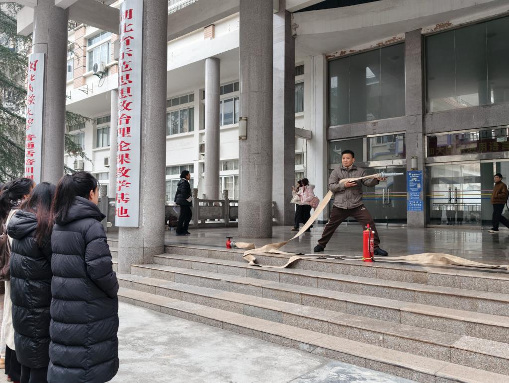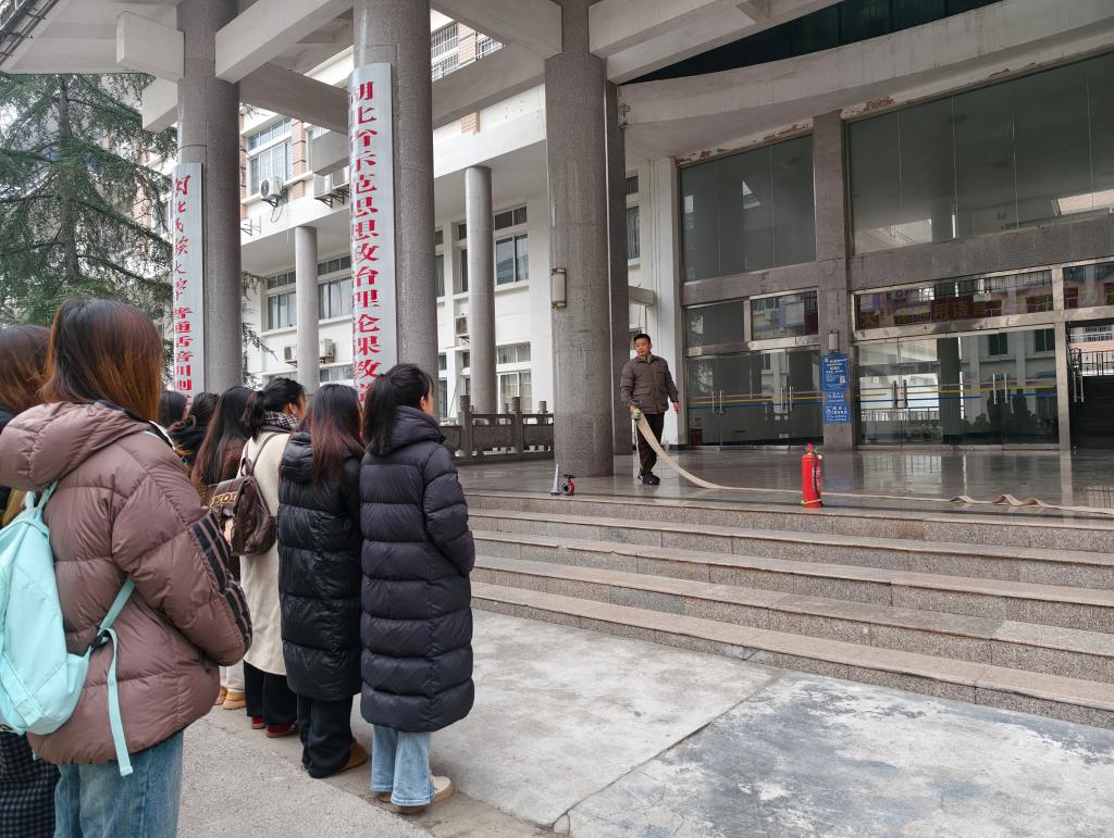 本网讯 12月29日上午,马克思主义学院协同学校保卫处联合开展消防安全应急演练活动,学院教职工及部分学生参与其中。保卫处消防科向宣霖、曾飞翔、吕刚三位老师到场指导,通过逃生演练、器材实操教学等环节,助力师生掌握火灾应急处置技能,强化消防安全意识。