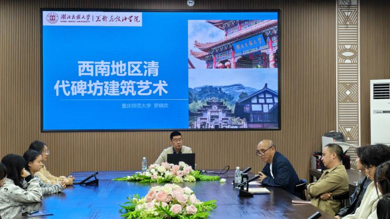 10月19日晚上7:30,重庆师范大学美术学院院长罗晓欢教授应邀在我院12B501会议室以《西南地区清代碑坊建筑艺术研究》为主题进行学术讲座。讲座由学院院长石庆秘教授主持,学院副院长向思全、部分师生代表参与聆听和研讨。
