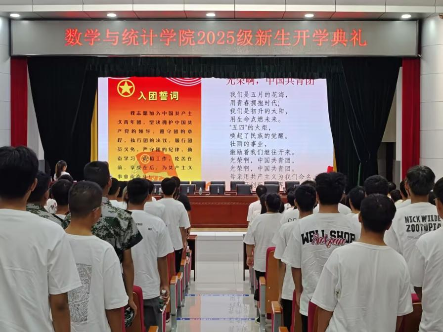恰逢新生开学之际,为深入学习抗战精神,厚植青年学子的家国情怀,9月10日晚,我校数学与统计学院在行政楼1号会议室举行2025级新生开学典礼,并在典礼结束后组织开展了“铭记历史,传承红色基因——九三阅兵”特色主题团日活动暨入团主题教育。活动由数学与统计学院团委办公室主任余聪围主持,全体新生参加。