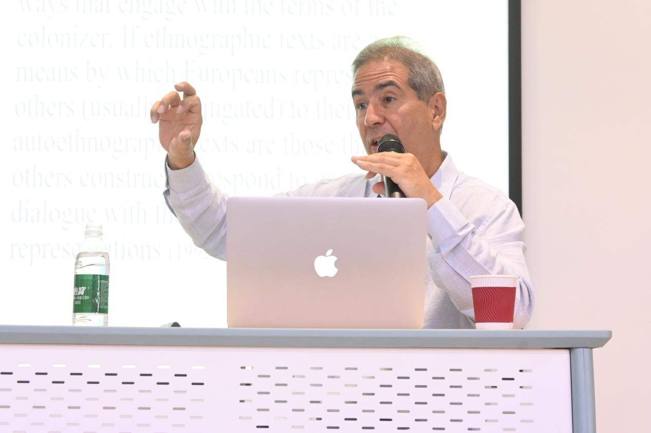 (本网讯 蒋金晶/文 李一铭/图) 9月18日至19日,美国纽约城市大学Gustavo Lins Ribeiro教授受邀来校开展学术讲座,北京外国语大学冯心怡担任翻译,100余名师生参与讲座。讲座由民族学与社会学学院党总支副书记申莉主持。