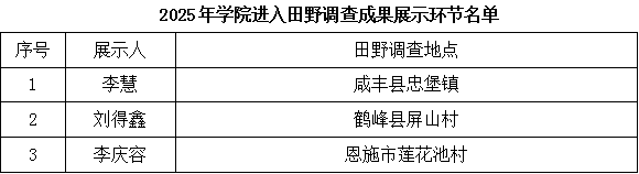 3.参与2024年秋季学期学院统一组织的田野调查,经带队老师推荐,有 3 位同学需要进入田野调查成果展示环节,展示田野调查内容和思考(名单附后,附件3)。
