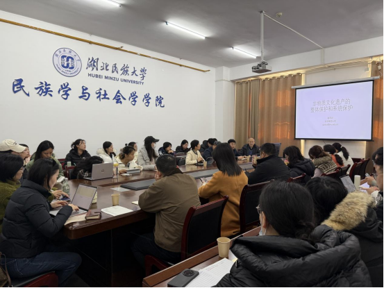 (本网讯 舒璠/ 李一/图)12月15日,北京师范大学人文与社会科学高等研究院学术委员会主任委员高丙中教授应邀在我院5B1205会议室作题为《非物质文化遗产的整体保护和系统保护》的学术讲座,讲座由我院院长杨洪林教授主持,学院师生到场聆听。