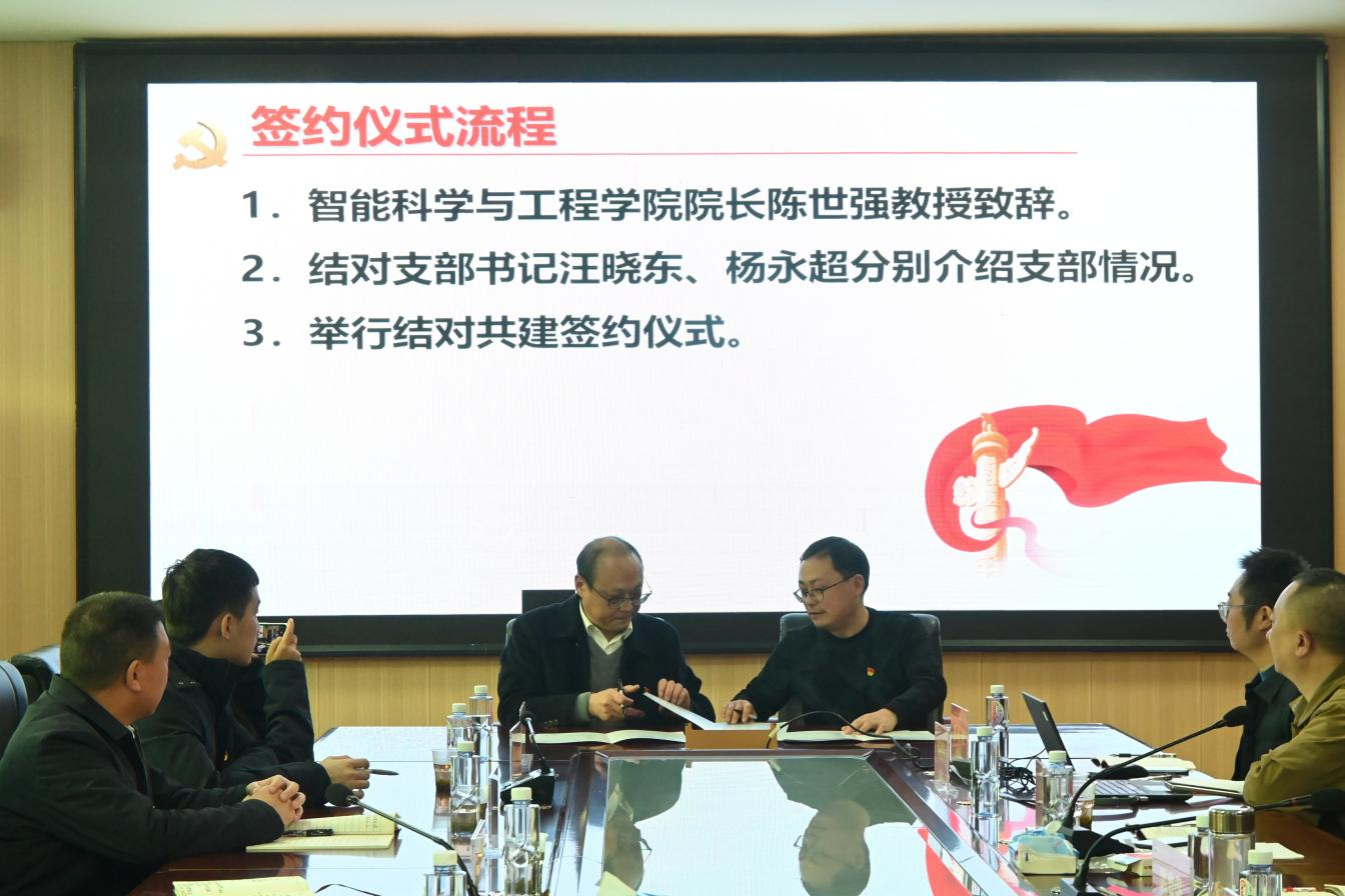 结对共建支部书记汪晓东、杨永超分别介绍了所在党支部及其单位的基本情况、资源优势、业务特点以及存在的不足,并一致表示将以此次支部结对共建为契机,以联合党建为引领,进一步深化双方在产学研用方面的务实合作。最后,双方党支部书记共同签署了结对共建协议,为持续推动校企合作向更深层次发展奠定了坚实基础。