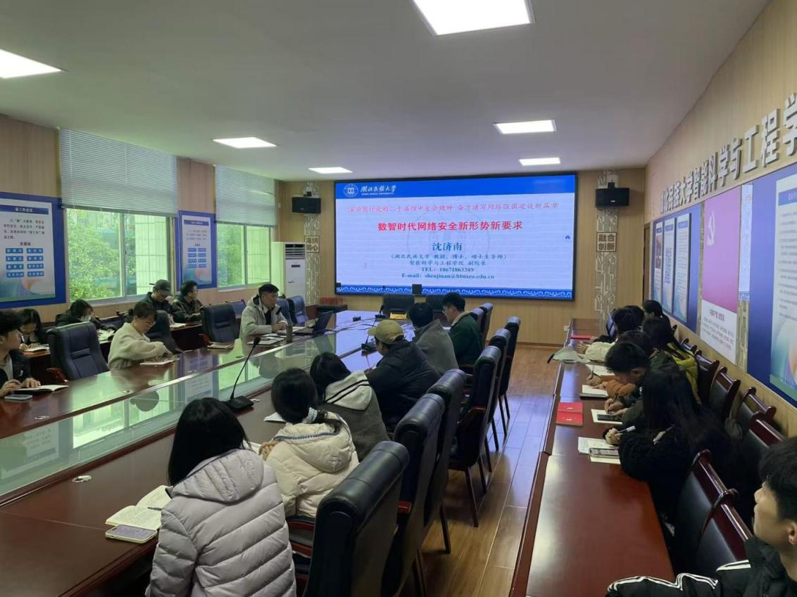 为深入学习宣传贯彻党的二十届四中全会精神,准确把握全会关于网信工作的新部署新要求,切实把思想和行动统一到党中央决策部署上来,2025年12月18日,九游会国际智能科学与工程学院研究生党支部在学院212会议室举办“数智时代网络安全新形势新要求”专题党课。学院党委委员、副院长沈济南担任主讲人,研究生党支部全体党员参加学习。