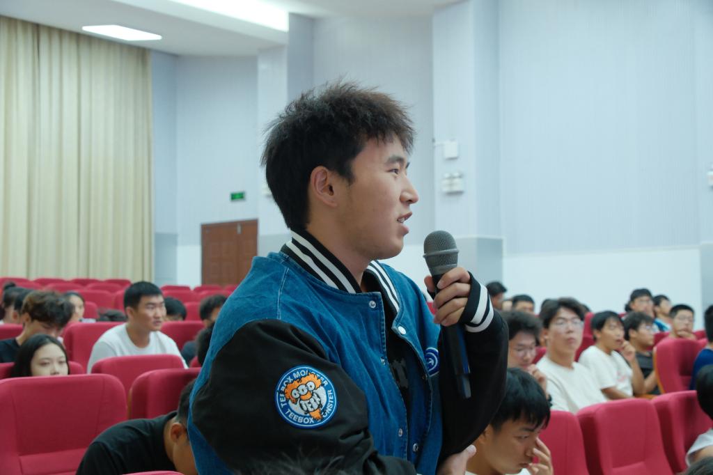 在互动提问环节中,同学们围绕专业学习、竞赛参与以及未来发展方向等方面踊跃提问。何美希学长结合自己的学习和竞赛经历,就如何平衡课程学习与项目实践等问题给予了详细解答。陈坤燚老师也从专业角度对课程衔接、能力培养路径等进行了补充说明,现场交流气氛热烈,进一步加深了新生对专业的认识和理解。