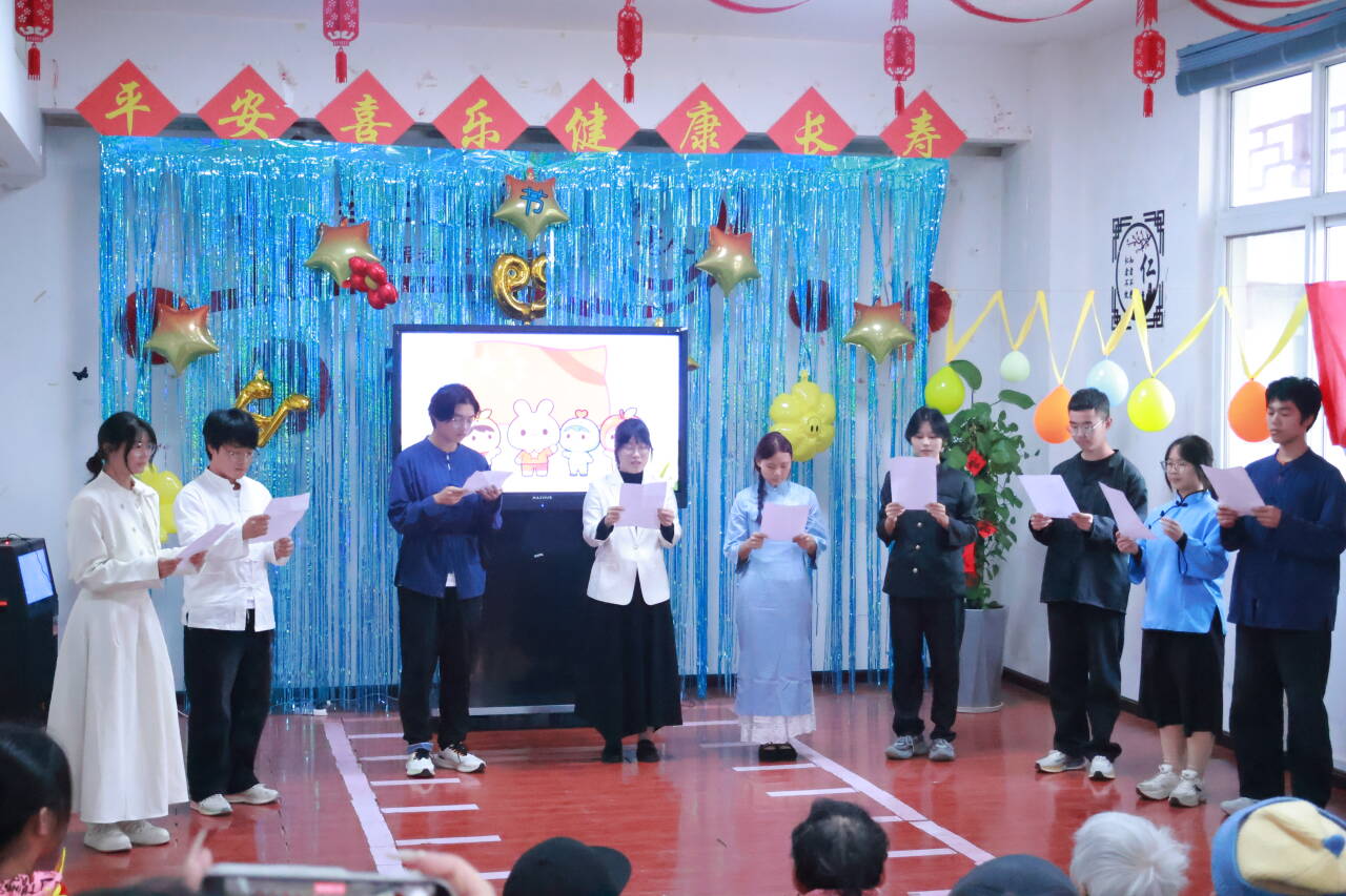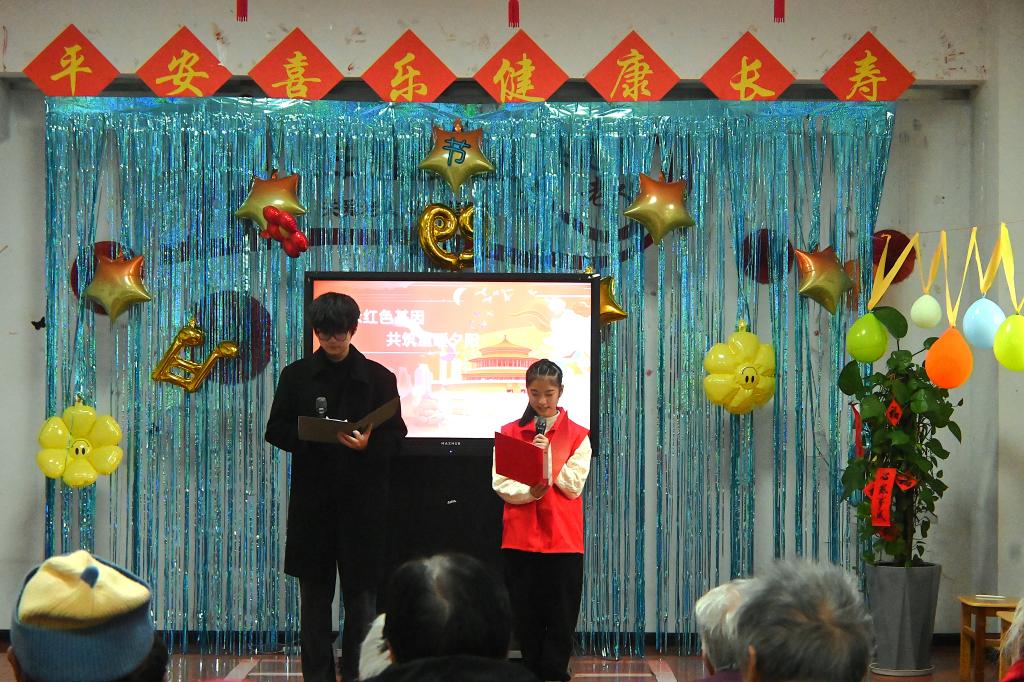 活动伊始,大学生与小学生志愿者共同担当主持人,他们用真挚的话语向在场的老人们致以亲切问候与美好祝愿,温和的语调瞬间让现场氛围愈发温馨。
