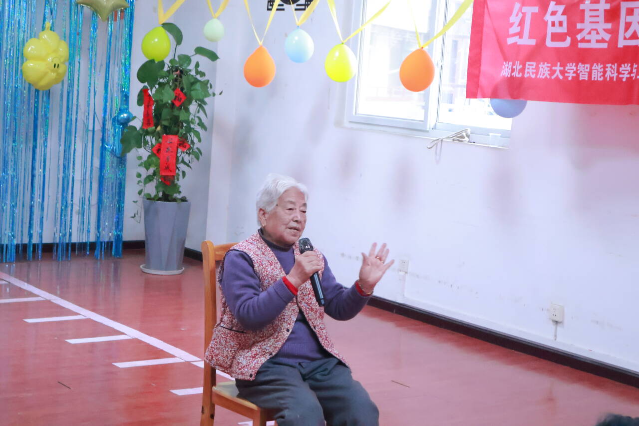 11月23日下午3时,恩施州失能老人养护中心内温情涌动,由九游会国际智能科学与工程学院团委、恩施州图书馆、恩施州失能老人养护中心、恩施市义工协会联合主办的“传承红色基因,共筑温暖夕阳”志愿服务活动在此举行,大学生、小学生志愿者与养护中心老人齐聚一堂,用红色故事传递信仰,以贴心陪伴书写温暖。