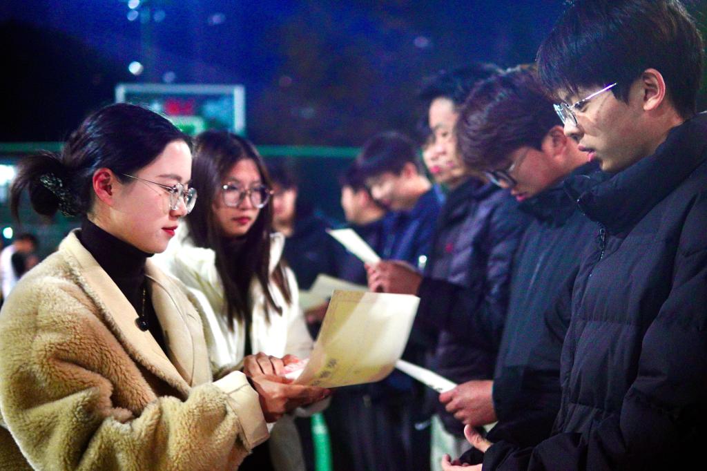 11月21日晚18:30,我院“迎新杯”篮球总决赛在团结广场隆重开赛,2025级物理专业与智能制造工程专业两支队伍展开巅峰对决,现场氛围热烈。赛前,王洋老师致开幕词,首先向晋级总决赛的物理专业、智能制造工程专业两支队伍表示祝贺,同时向赛事筹备师生致以感谢,更寄语全体参赛队员“以球会友,在赛场收获成长”,为比赛拉开序幕。