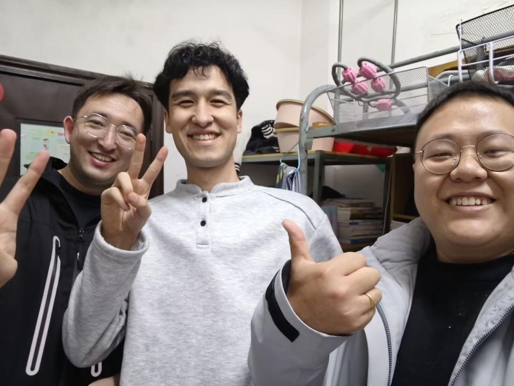 辅导员在宿舍跟同学们合影