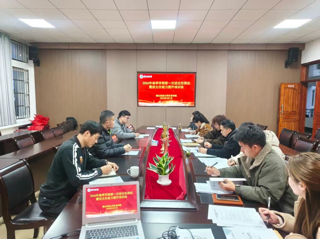 2026年3月1日,我院在会议室召开2026年春季学期第一次班主任例会暨班主任能力提升培训会。院长何斌、党总支副书记万利、学生科辅导员及全体班主任参加会议,会议由学生科科长张弋明主持。