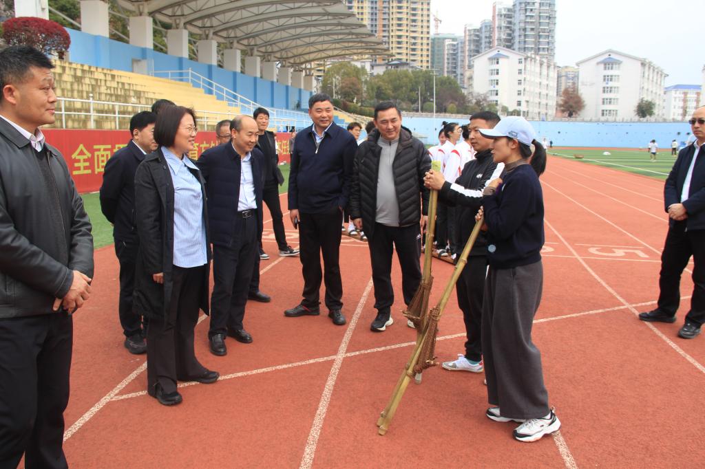 调研组深入民族传统体育训练场馆,实地察看高脚竞速、板鞋竞速、陀螺等省级训练基地建设与日常训练情况,详细了解学校民族传统体育人才培养、赛事备战、文化传承与校地协同开展情况,对我校长期深耕民族传统体育、服务全省少数民族体育事业发展给予充分肯定。