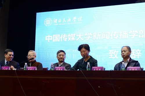 湖北省新闻与传播教育学会2017年年会暨“传媒关系的重塑与传播教育变革”学术论坛在我校举行。中国广播电视与新媒体研究会会长、中国传媒大学新闻传播学部学部长高晓虹教授作主题报告。