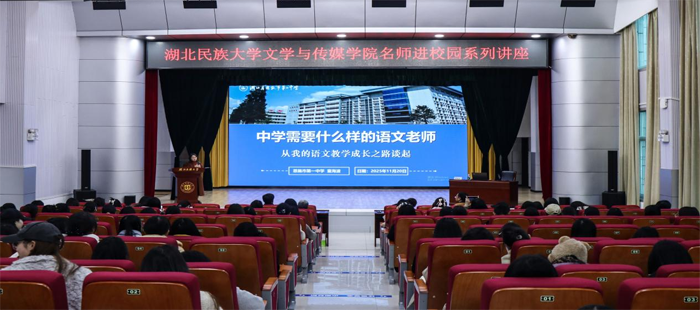 (本网讯 文/蒋林君 图/王思云)2025年12月11日,文学与传媒学院"名师进校园"系列讲座第四期在行政楼一号会议室开讲。恩施市小渡船中学校长陈劲松应邀作《核心素养视域下的课堂教学重构》专题报告,学院副院长江佳慧主持活动,百余名师生现场聆听。 陈劲松校长以"渗透核心素养背景下的课堂教学实...