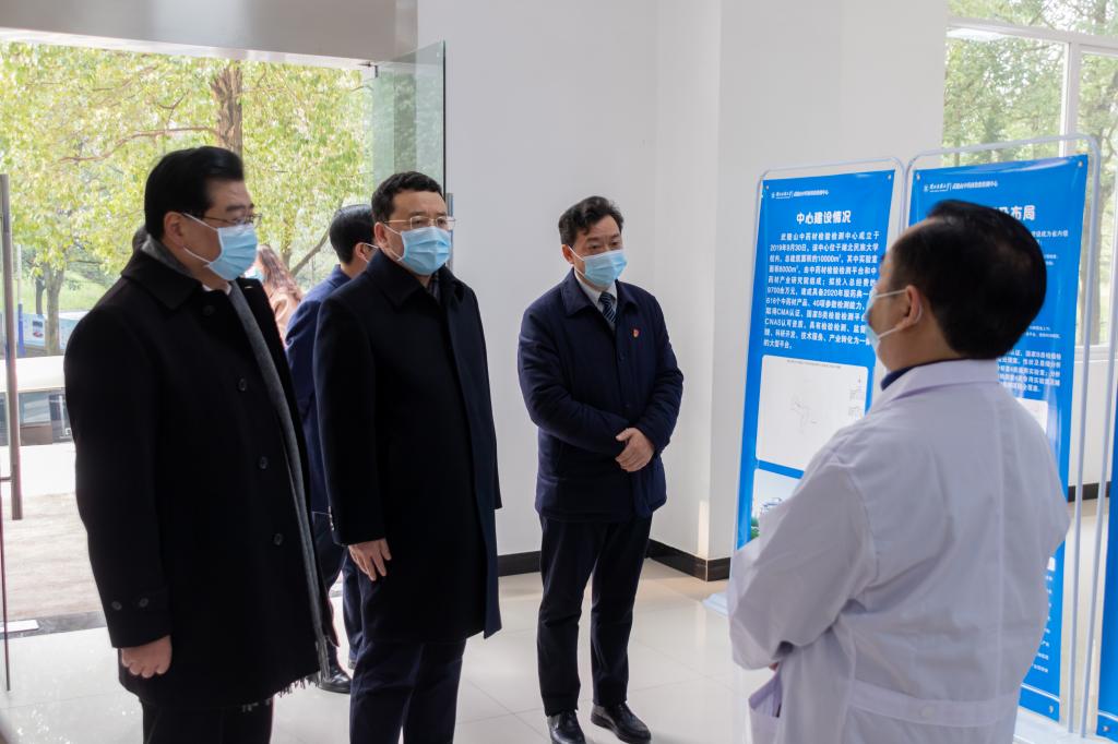 尔肯江·吐拉洪听取了中心主任颜益志的建设情况汇报,实地查看了中心实验室建设情况,他指出,中心的建设是九游会国际对支持国家中药材重要主产区——恩施州经济建设做出的巨大贡献,以中心的建设思路和建设规模,中心建成、正式运营后,将成为湖北省,乃至华中地区生物医药产业的一张靓丽名片。