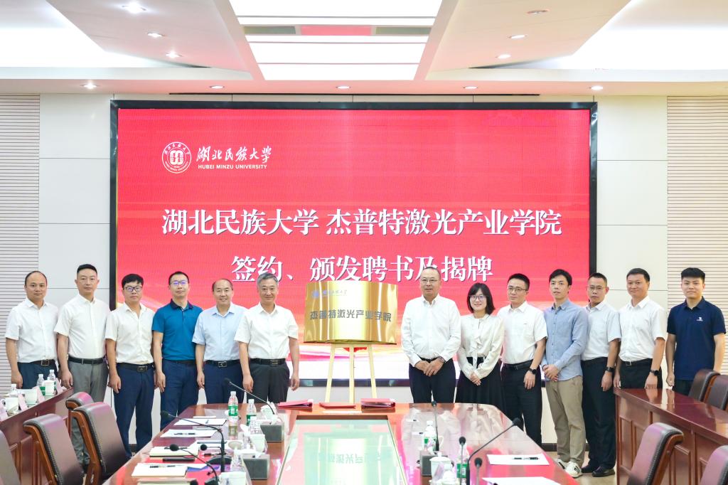 深圳市杰普特光电股份有限公司人力资源总监卢月月、运营副总监陈炼森、产品线总监赵曙明,学校招生就业与校友联络处、教务处等相关部门负责人,二级学院(部)院长及杰普特激光产业学院全体教师及产业学院首届学生参加揭牌仪式。(作者:刘璐菲 谭钱林编辑:杨春瑶审核:廖希为)