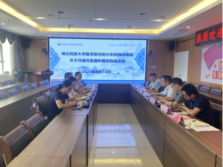 为深化院校合作,提升中医学人才培养质量,2025年8月14日医学部常务副主任陈龙菊一行赴利川市民族中医院开展实习基地考察调研活动,就共建非直属附属医院、临床教学、学生管理等工作进行深入交流。利川市民族中医院党委书记徐于松、院长刘永平、副院长曾朝辉、杨辉及相关科室负责人共同参与了座谈。