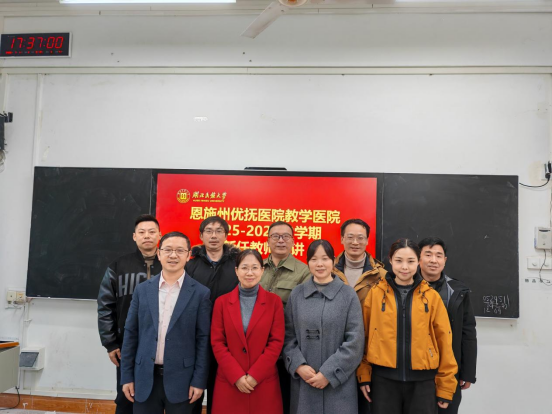 为加强教师队伍建设,提升新任教师教学水平,医学部于2月3日在桂花园校区8302教室举行了恩施州优抚医院(教学医院)新任教师试讲活动,五位新任教师参加试讲。医学部常务副主任陈龙菊、学校和医学部教学督导组专家、教研室主任担任评委。医学部副主任黄筱钧主持试讲活动。