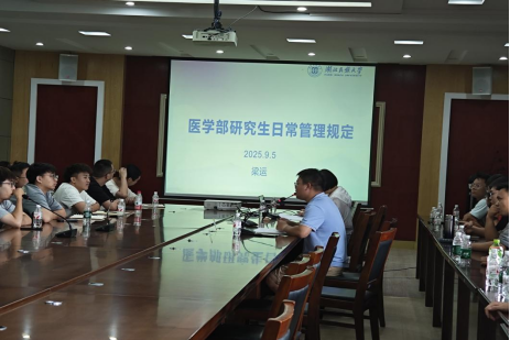 医学部常务副书记唐敦双教授以“博学笃志,本立道生,厚植爱国爱校情怀”为题为研究生进行了开学第一堂思政课。结合9月3日纪念中国人民抗日战争暨世界反法西斯战争胜利80周年阅兵式开展爱国教育,并从校训、校歌、学校及医学部的历史沿革三方面进行爱校教育。